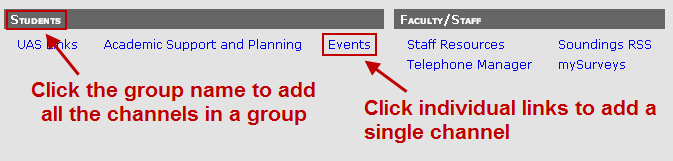 Content is displayed in boxes called Channels. These channels can be positioned on a page by dragging and dropping them to the three available columns.