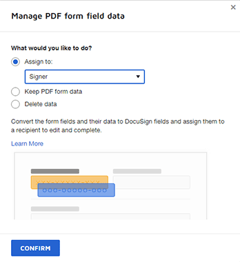 - If you've uploaded a fillable PDF you can choose to Assign it to a signer to automatically convert the content