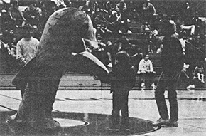 Whalesong archives show that Spike starting appearing on campus in September of 1987. At the time Spike was very popular at basketball games. Today Spike can often be spotted at events both on and off campus. Spike lives at the Recreation Center and is out for display, greeting those who enter the facility.